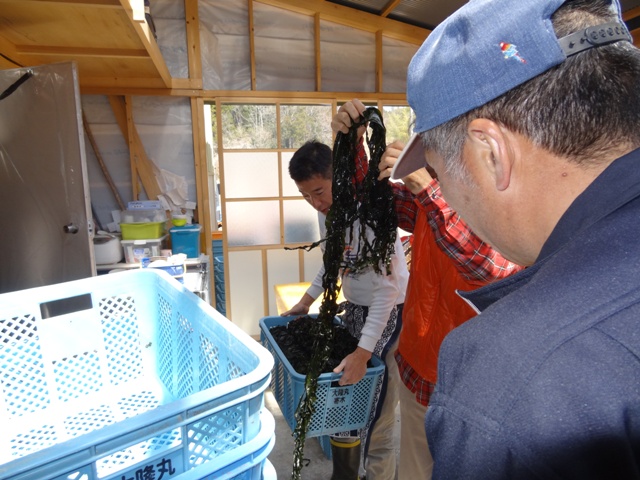 食事を頂いた場所はストーブ設置した建物のすぐ下にあるワカメの加工場で、ちょっとした社会科見学をさせてもらいました。ボランティアの方などもいて活気がありましたよ。