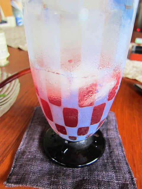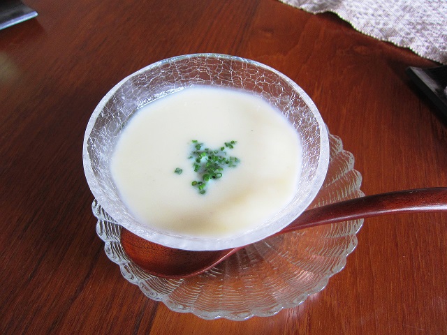 今年はジャガイモの冷製スープ、赤シソのジュース。