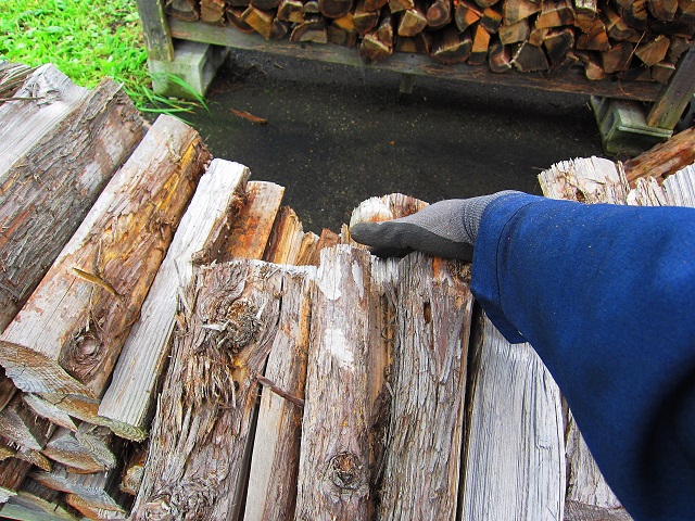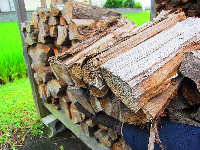 そうすると薪が出ますから、下から両手を使って持ち上げましょう。