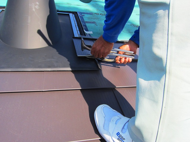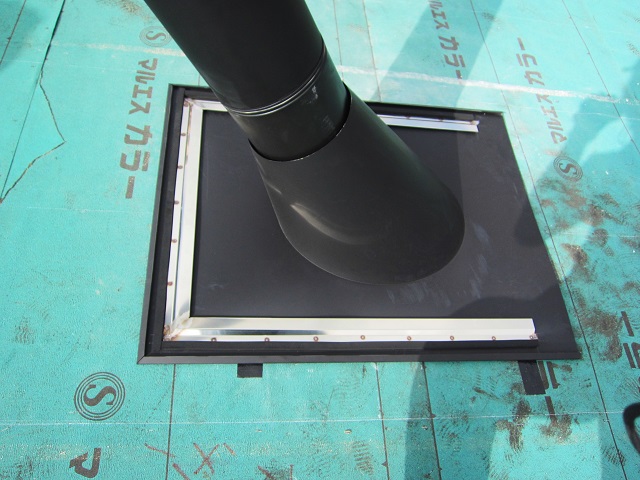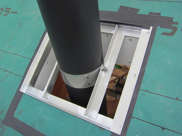 屋根でしっかり煙突を持たせる為に開発したオリジナルルーフサポートです。