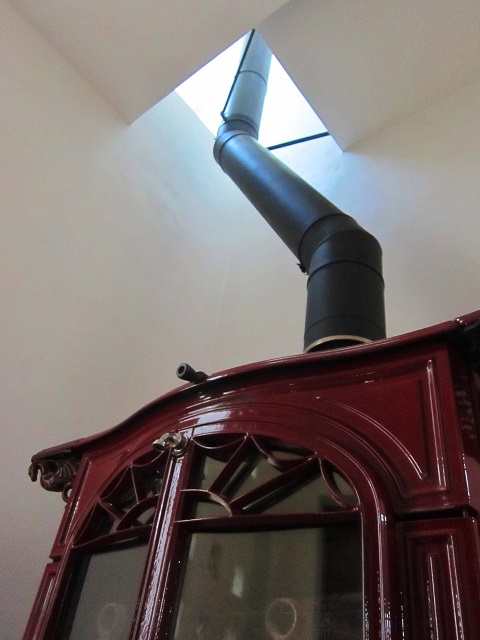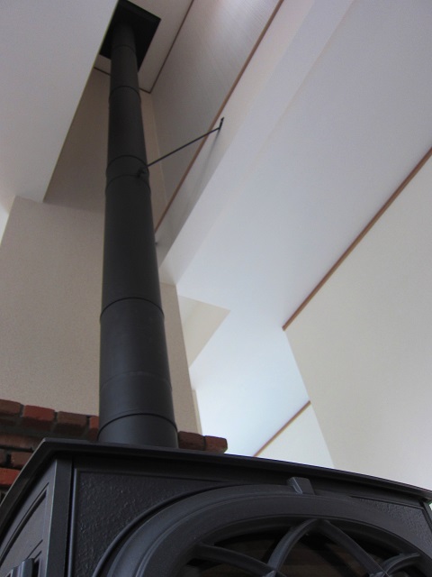薪ストーブ設置をしたら必ず写真は撮りますが、吹き抜けを煙突が突き抜けているお宅ではこんなアングルで写真を撮ってます。