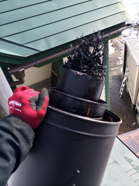 これは下から煙突掃除しただけではわかりませんし、第一に薪が悪し。