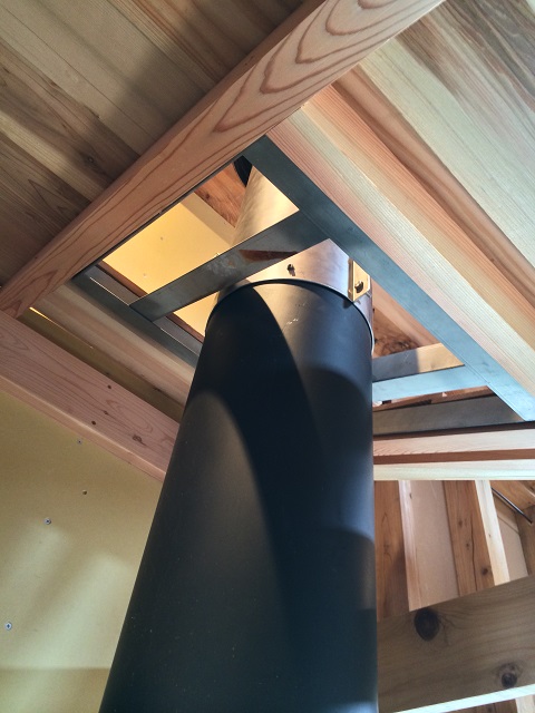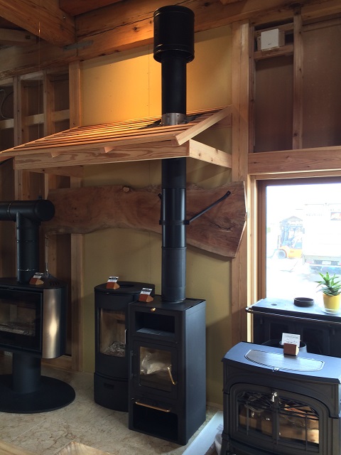 煙突の説明コーナーとして室内に屋根と煙突トップをつけました。