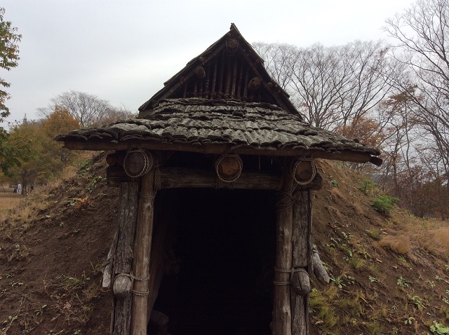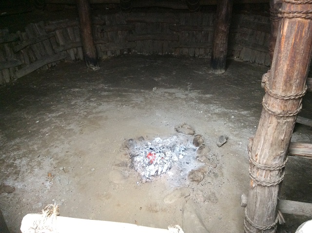 竪穴式住居の中は火が焚かれ十分に暖かい。
