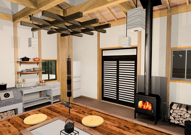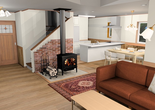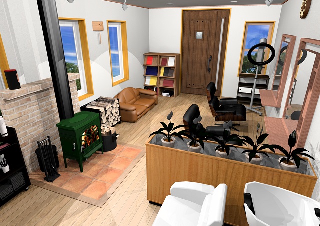 薪ストーブ設置後のイメージパースで事前にマッチングできます。