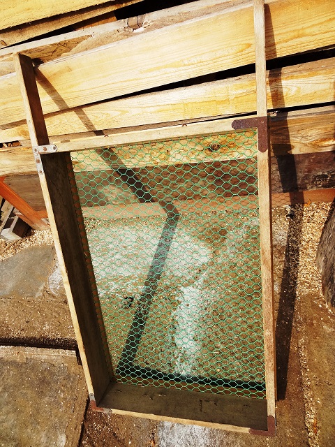 チェーンソーの細かいひっくずと分けるためにこんなふるいを使ってますよ。
