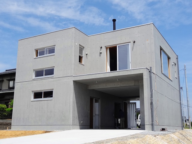 外観です。一階は駐車スペース、ガレージで二階が居住スペース。