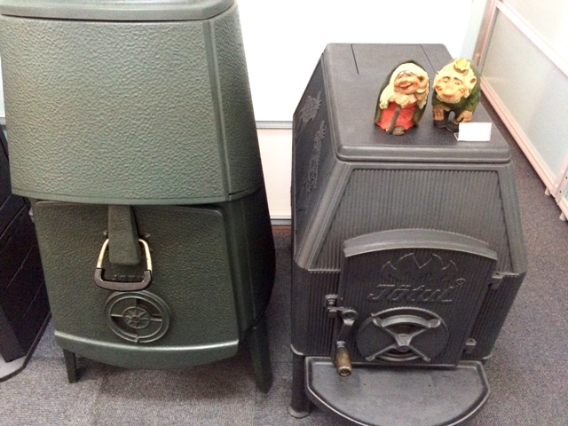 昔の型の薪ストーブです。モアイのようでかわいいです。