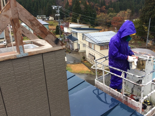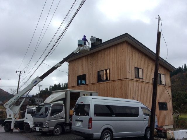 工事は施主様のお父さんが高所作業車を用意し運転までして頂いたおかげで雨でも楽に作業できました。本当にありがとうございました!