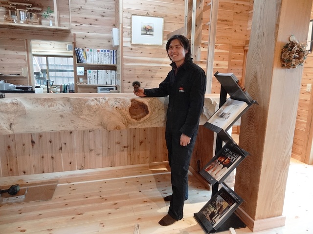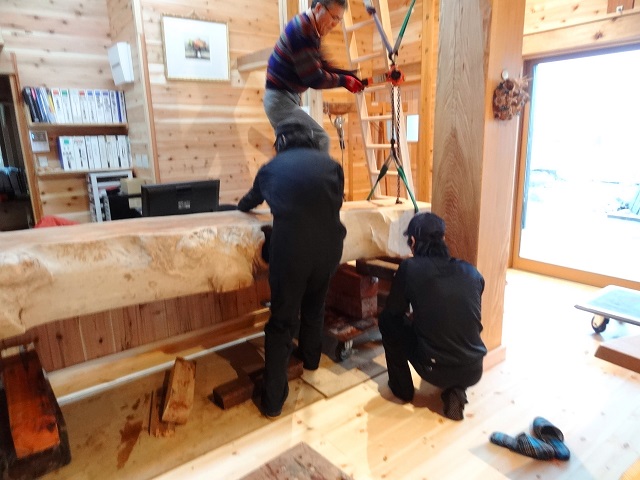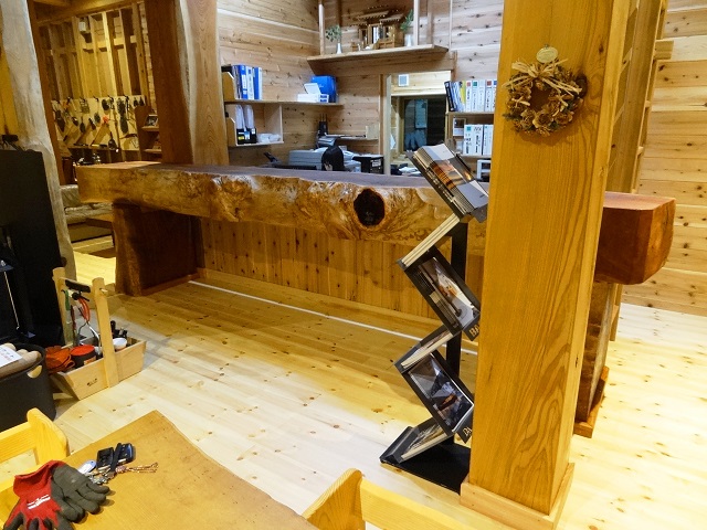 ご察しの方もいるでしょう、これは極太のケヤキを使ったカウンターテーブルです。