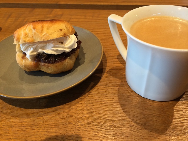 薪ストーブの天板であんこを作って炉内でパンを焼いて仕上げに生クリームを加えて出来上がり!