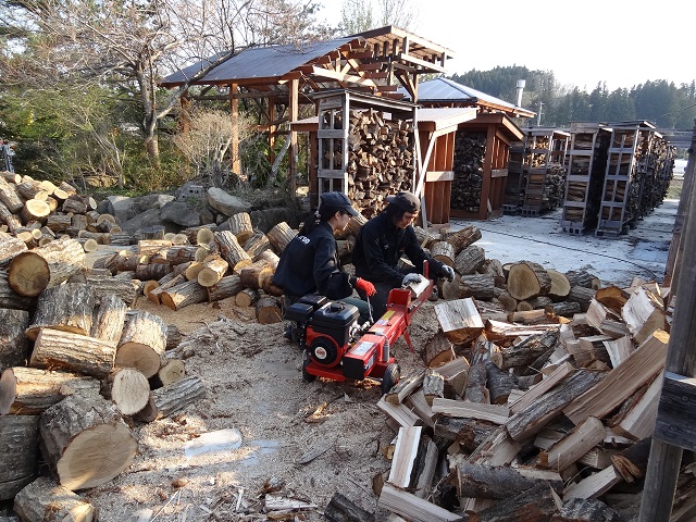 只今コツコツと薪割ってます!