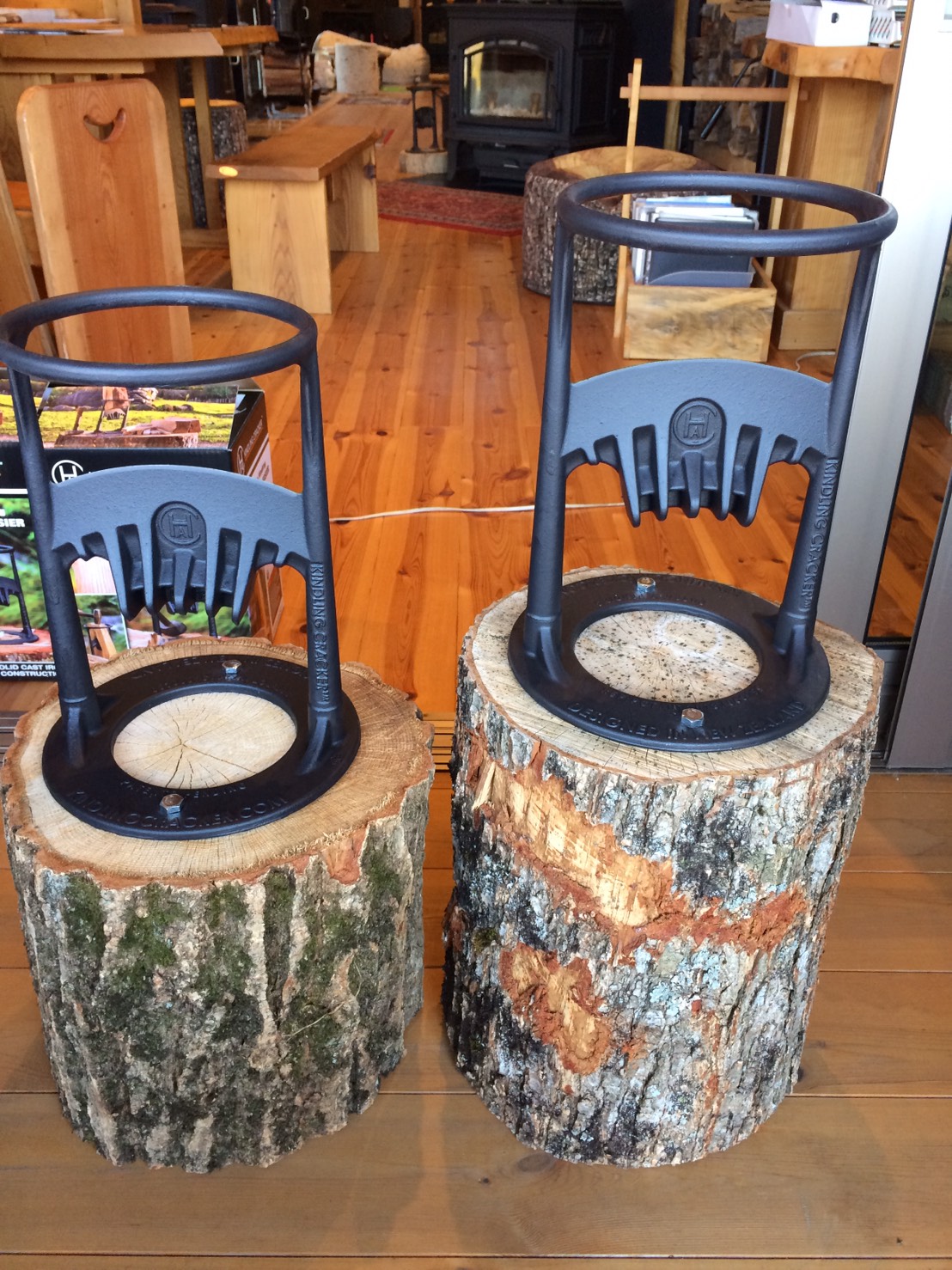 焚付け作りで当店でも人気の『キンドリングクラッカー』ですが、ご購入された方には丸太の台も無料で差し上げておりました。