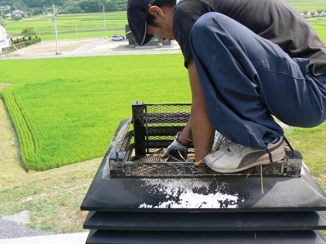 ということで、除去。 煙突の中に分厚く巣を作ってることもあります。すごい努力です。