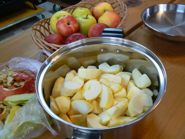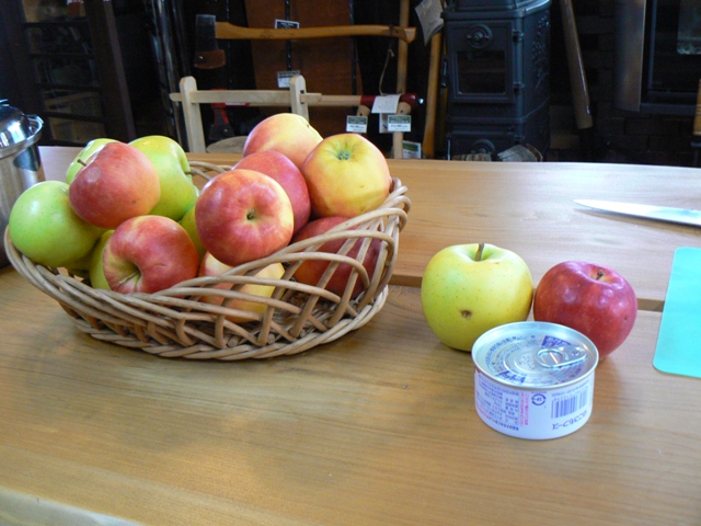先日、ストーブでりんごを煮てみました。