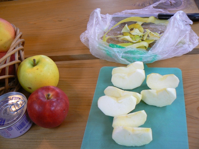 まずは、りんごの皮を剥き、適当に切ります。