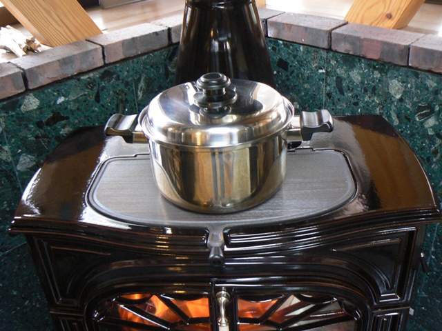 ストーブにかけ、蓋を閉めます。