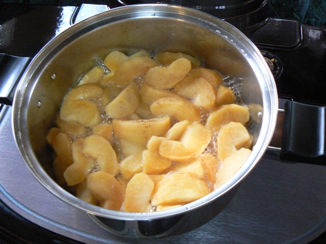水もなにも入れずに、りんごから汁が出てきて、こんなにひたひたになります。