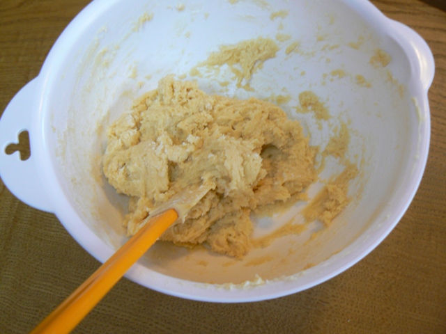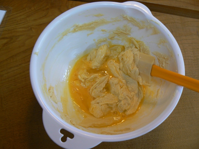 クリーム状になるまで、ゴムベラで混ぜます。